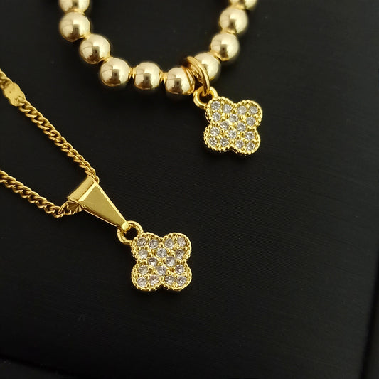 Juego Trebol VC Cadena, Aretes, Dije y Manilla - J43256