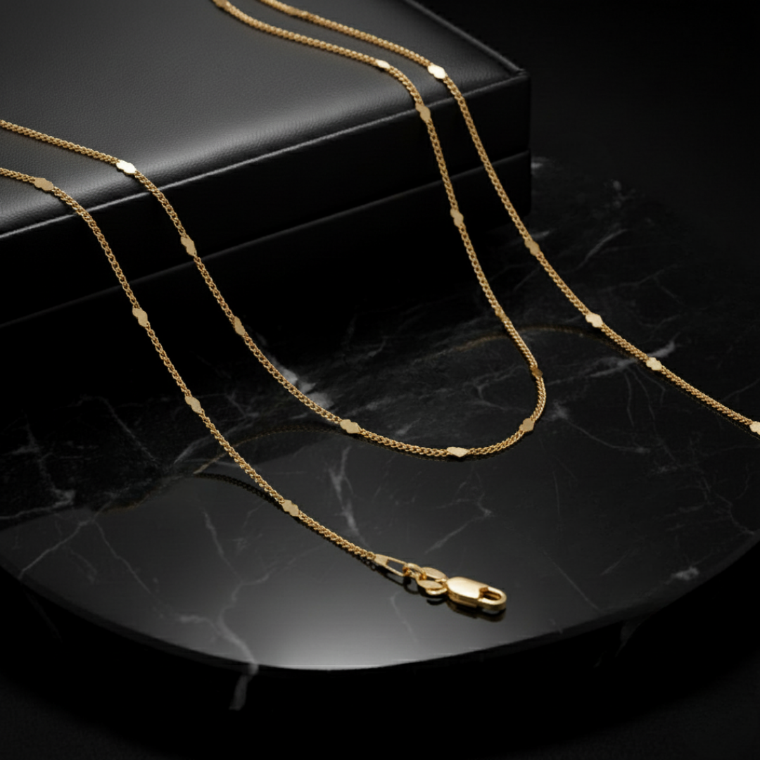 Hay cadenas que simplemente enamoran 💫. Esta delicada joya en oro laminado 18K está diseñada para iluminar tus días con sus destellos en forma de corazón ❤️. Un símbolo de amor y brillo que no pasa desapercibido, perfecto para regalar (o regalarte) un toque de ternura y sofisticación.