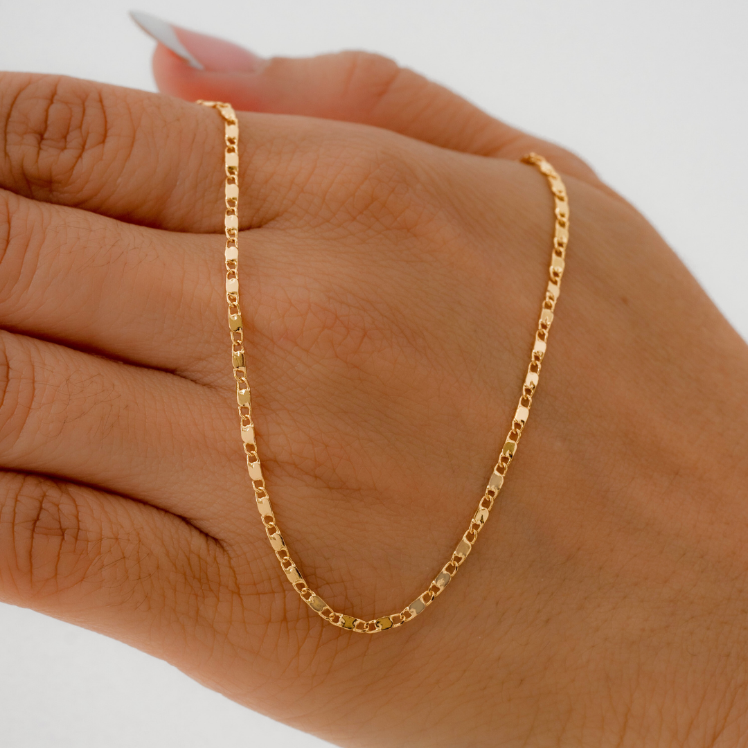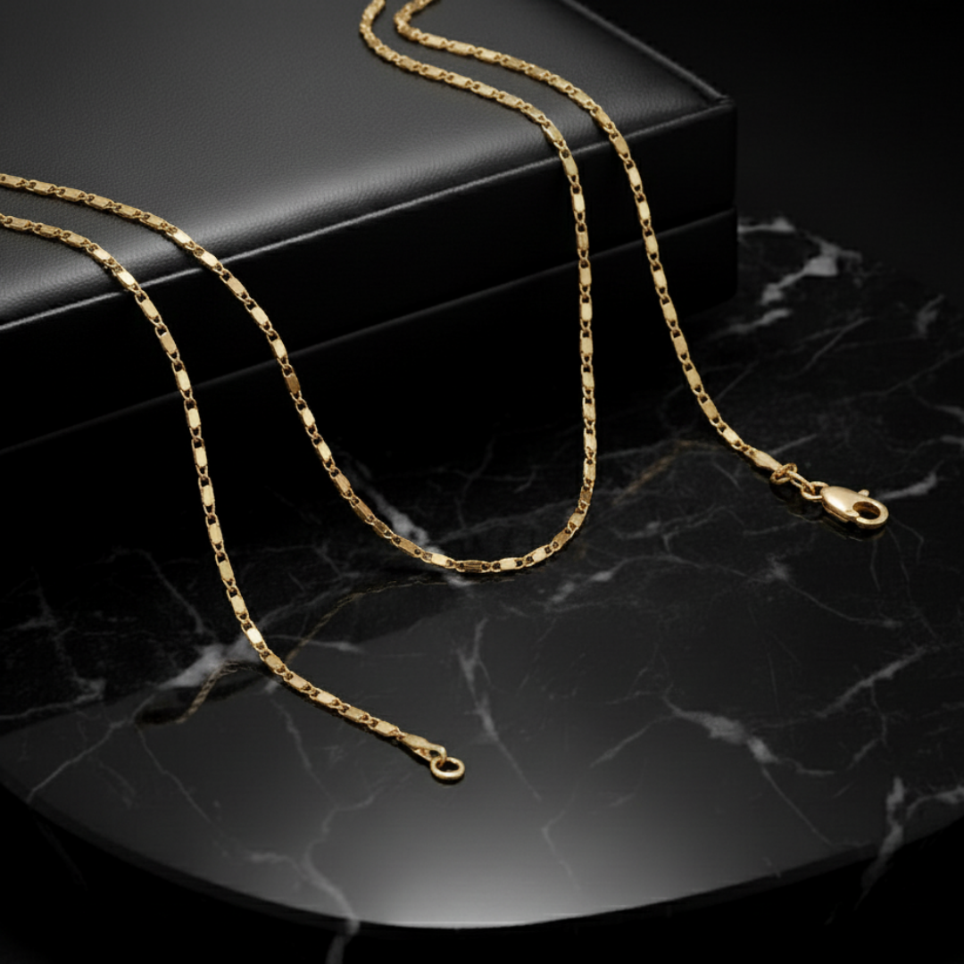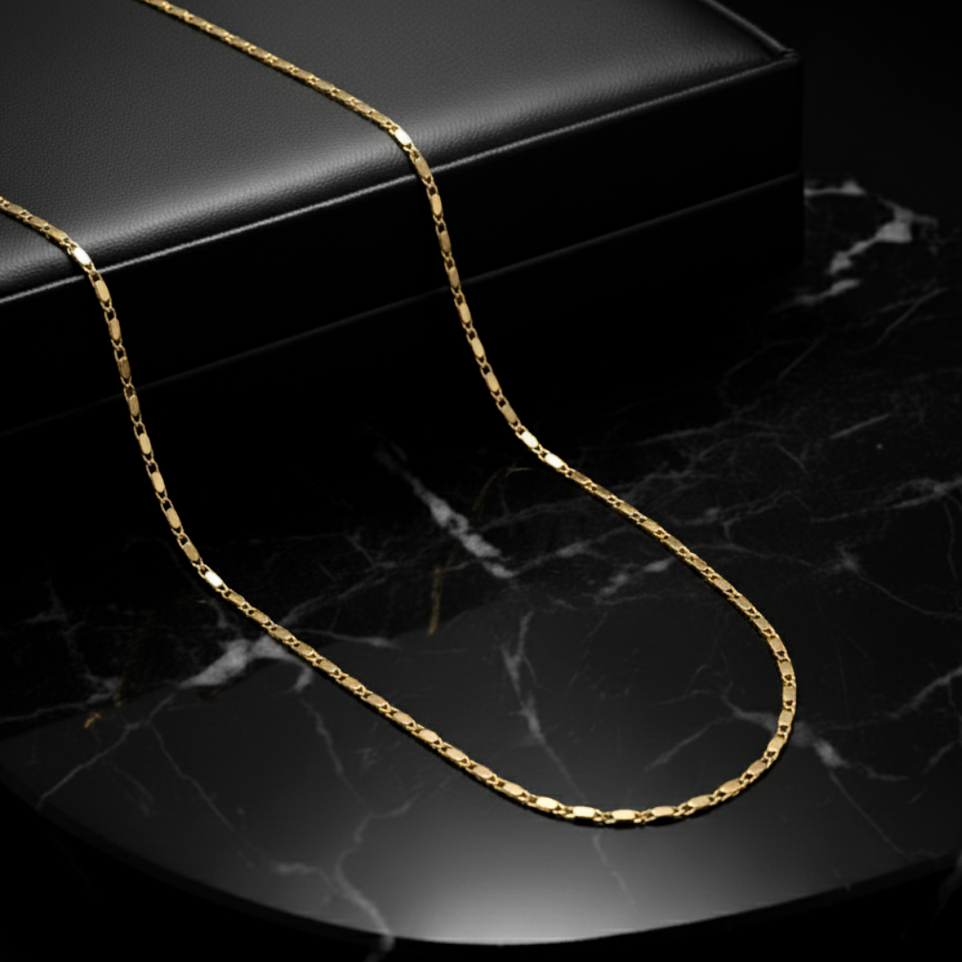 ¿Buscas una joya que combine modernidad con un toque de sofisticación clásica? 💫 Nuestra cadena estilo caracol de eslabones planos es esa pieza que eleva cualquier look con su brillo sutil y diseño refinado. Ideal para llevar sola o con tu dije favorito. ¡Haz que cada detalle hable de ti! ✨