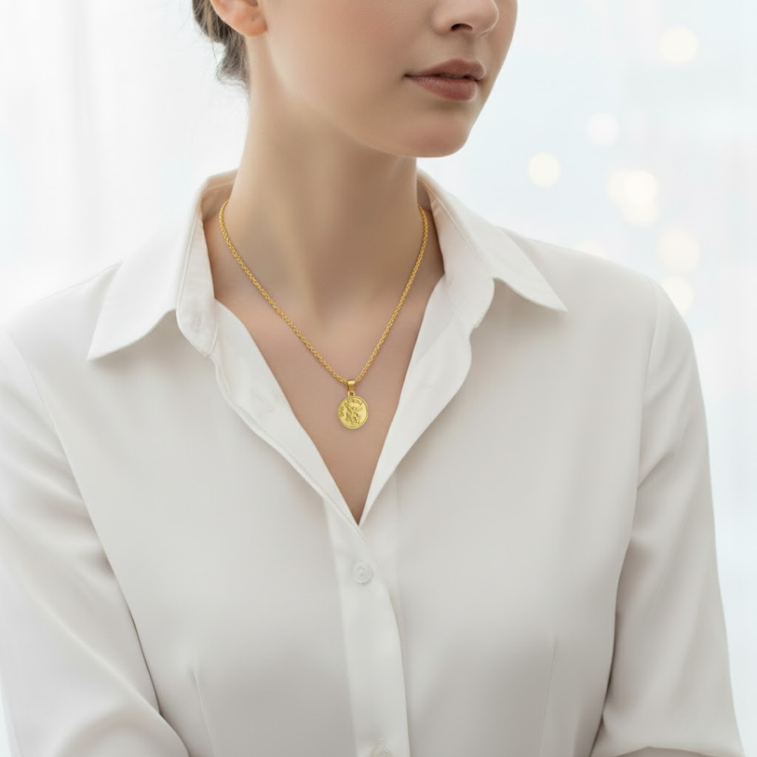Juego Cadena Larga y Dije San Miguel Protector - J41210