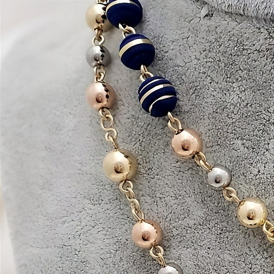 Esta camándula en oro laminado 18k no solo es un símbolo de fe, sino también una pieza de distinción. Sus balines pulidos y detalles argollados crean un diseño único que capta miradas, mientras la cruz tipo péndulo con circones representa protección, equilibrio y fortaleza. Ideal para quienes desean llevar consigo un recordatorio de fe con un toque moderno y elegante.