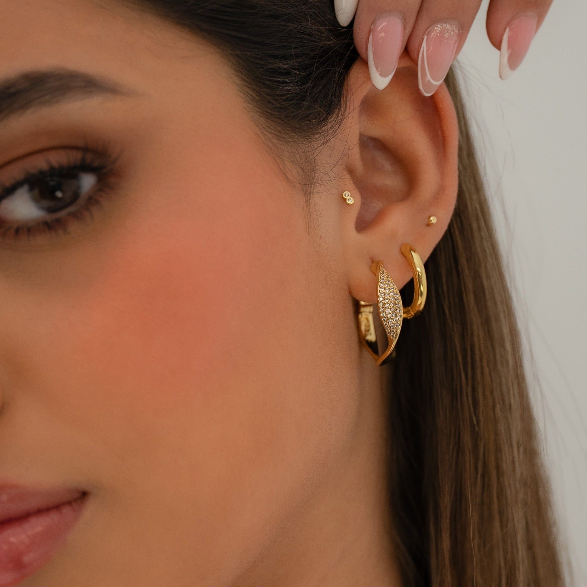 Diseñadas para mujeres que dominan el arte del detalle, estas candongas fusionan elegancia contemporánea con un toque glam. Su forma estilizada, tipo hoja, y el pavé de micro circones crean una joya sofisticada y perfectamente equilibrada para looks que exigen distinción sin exagerar.