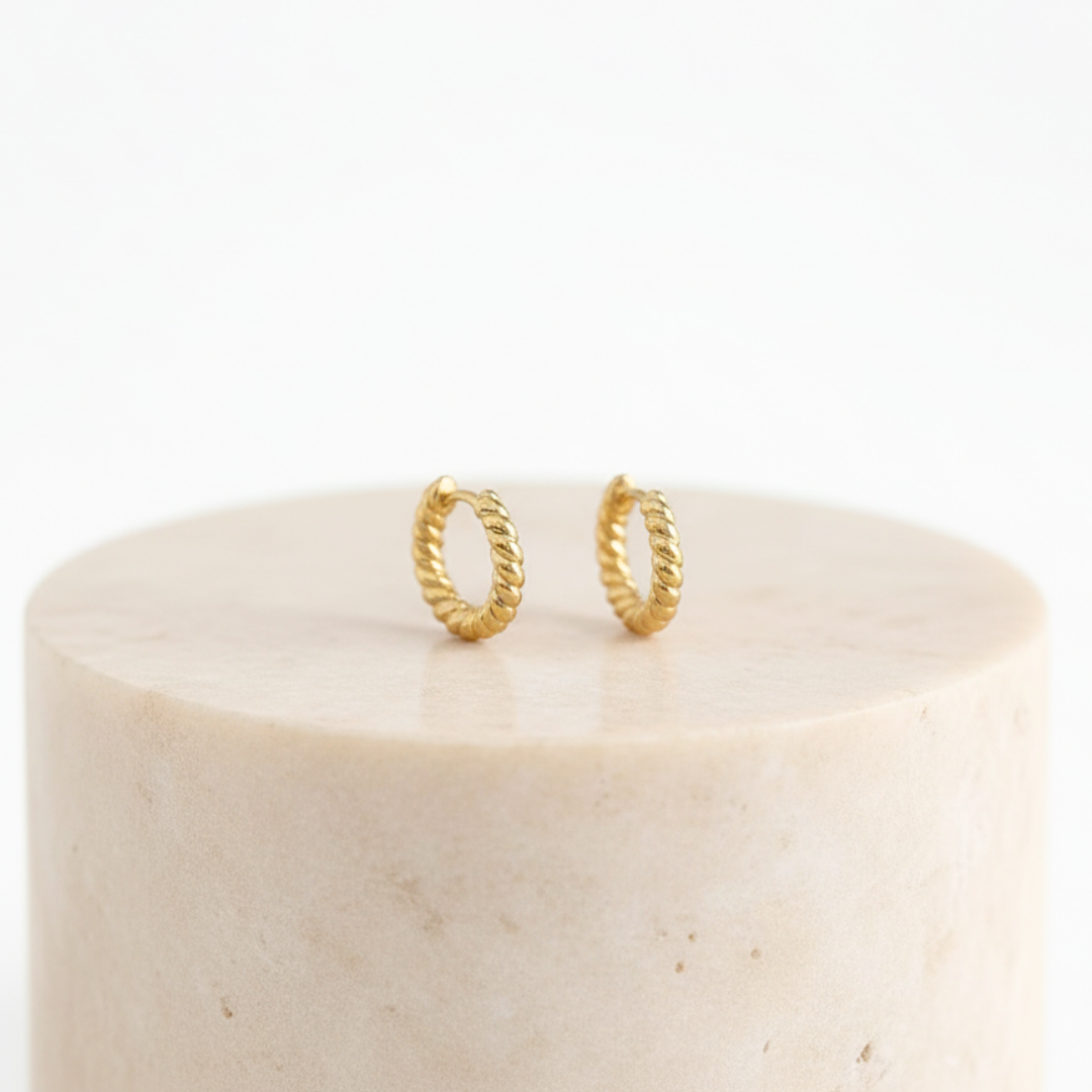 Hay piezas que, aunque pequeñas, tienen el poder de transformar. Estas candongas mini en espiral son el detalle dorado que ilumina tu rostro y le da un aire sofisticado a tu estilo. 🌟 Su forma clásica con textura twist evoca elegancia atemporal y ese encanto sutil que nunca falla.