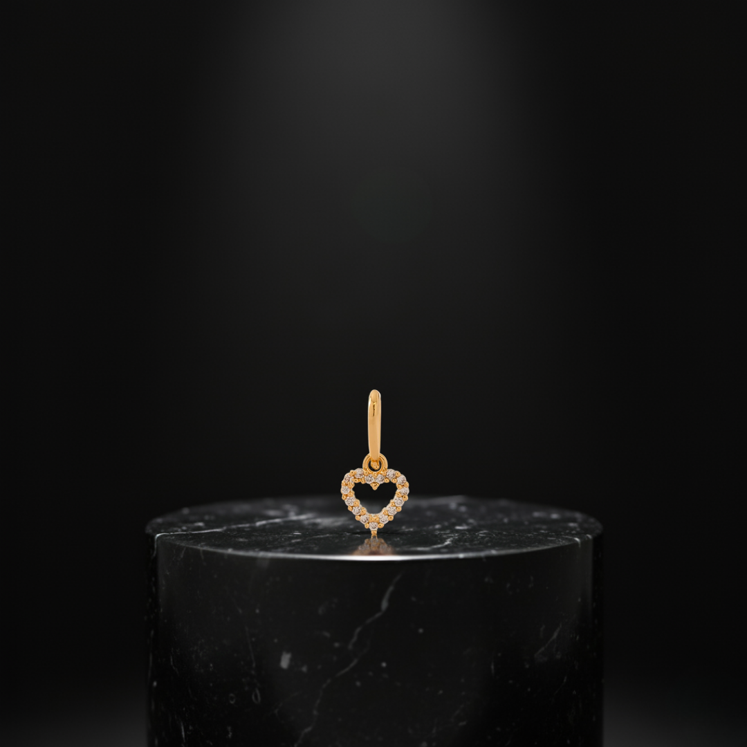 Este dije en forma de corazón, con finas circonias que capturan la luz con cada movimiento, es la definición de ternura y elegancia minimalista ✨
