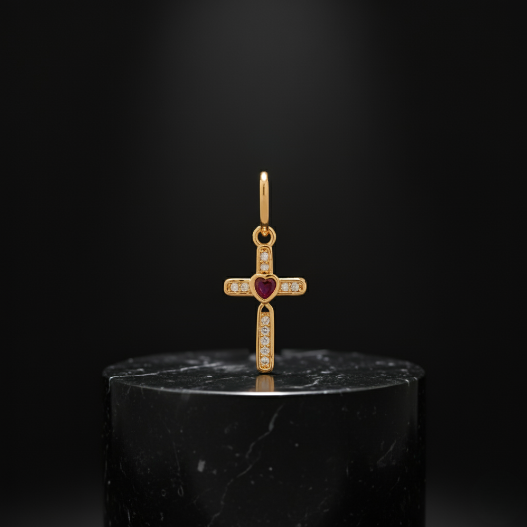 🔴 El corazón rojo es un detalle único que hace de esta cruz algo diferente