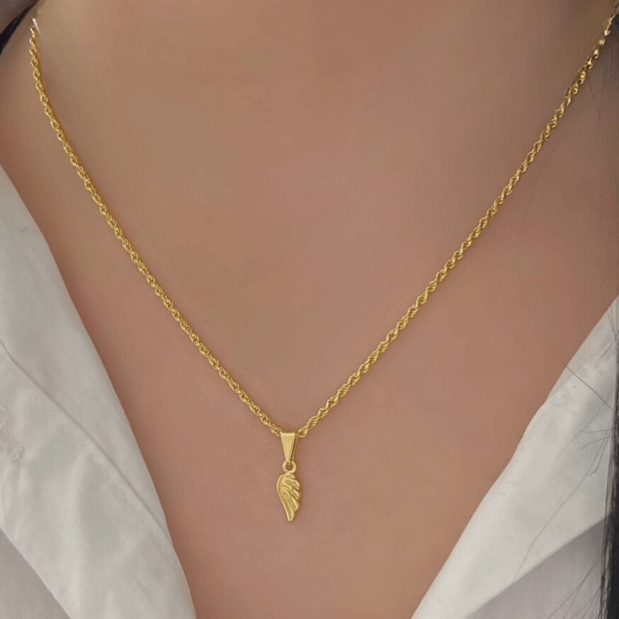 El dije de alita en oro laminado es una joya exquisita que brilla con elegancia y sofisticación. Elaborado con precisión y atención al detalle, este dije presenta una miniatura de un ala estilizada, que encarna la gracia y la belleza etérea.