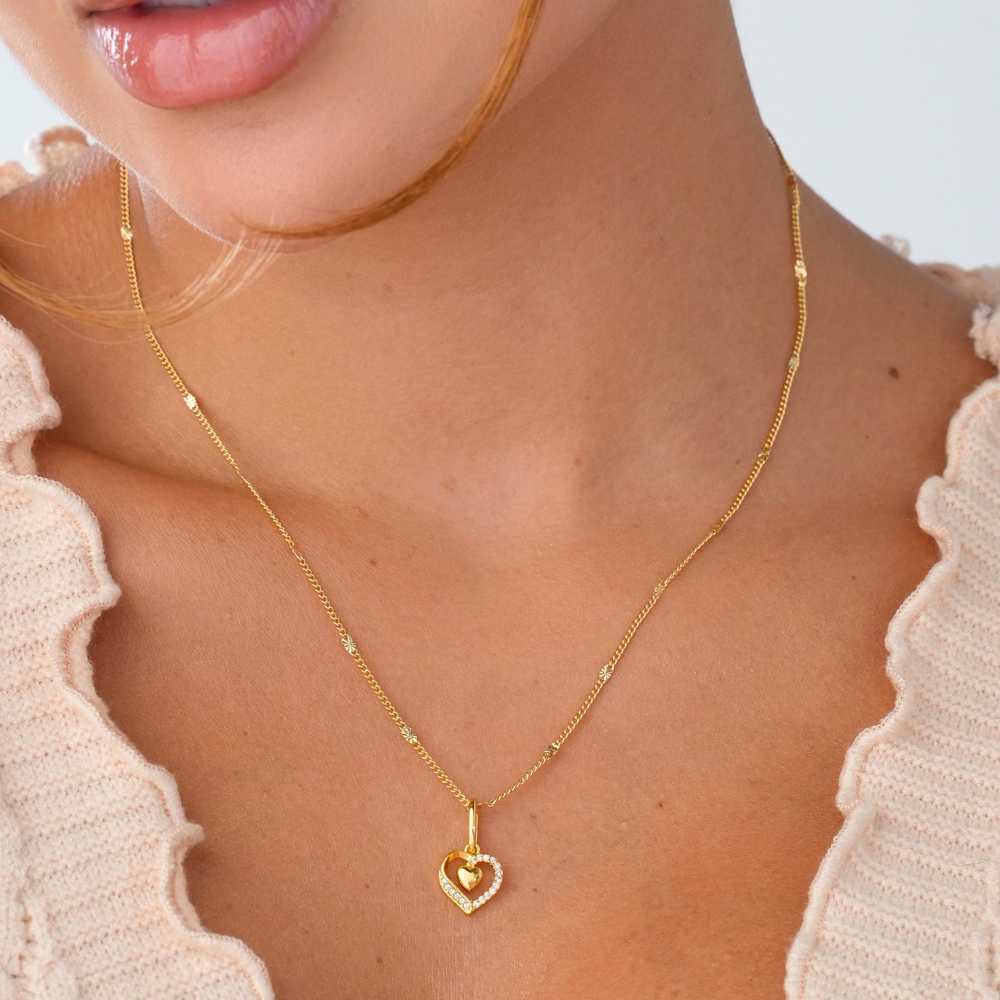 Con un diseño que une dos corazones –uno liso que representa la esencia pura del amor, y otro lleno de circones que simboliza su magia y brillo ✨– este dije es perfecto para recordar que amar siempre será lo más valiente.