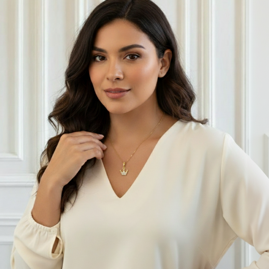 Inspirada en el símbolo de la realeza espiritual y el poder interior, esta joya refleja la fuerza de quien sabe quién es y hacia dónde va.