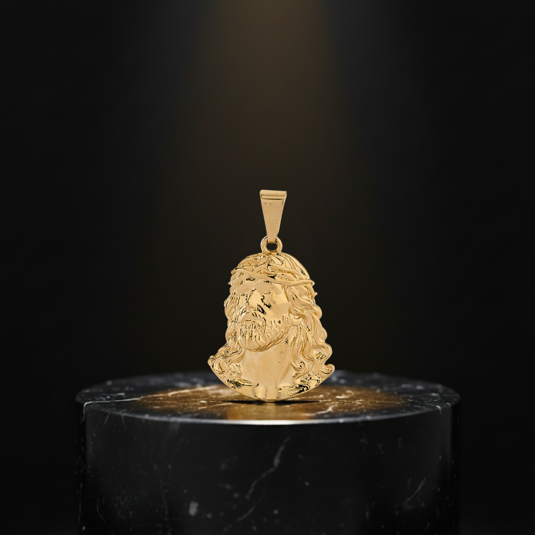 Este dije representa a Jesús con una expresión serena y poderosa, recordándonos que su amor y sacrificio están siempre presentes.