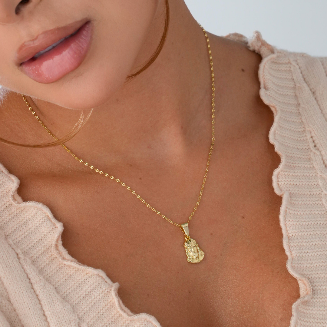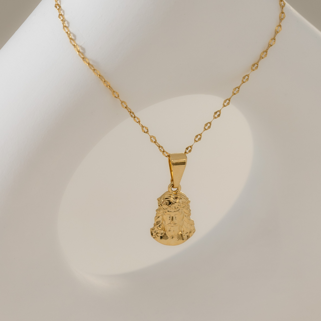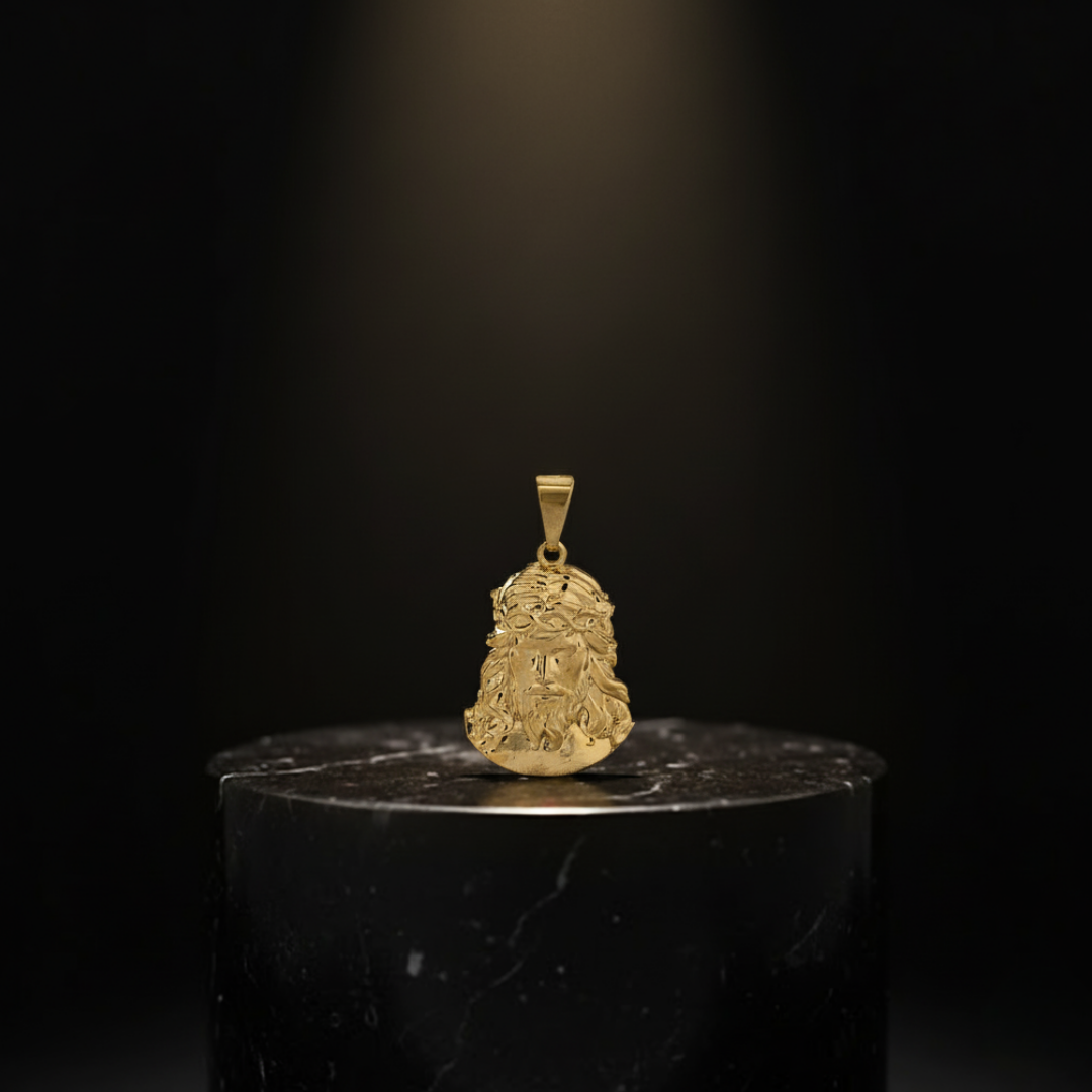 Este dije pequeño del rostro de Jesús combina devoción y elegancia en un diseño compacto, ideal para llevar cerca del corazón cada día.