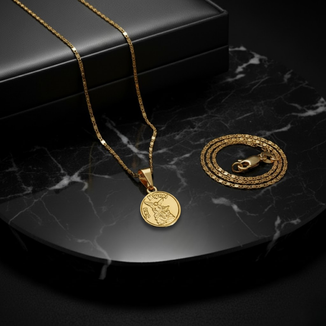 Juego Cadena Larga y Dije San Miguel Protector - J41210