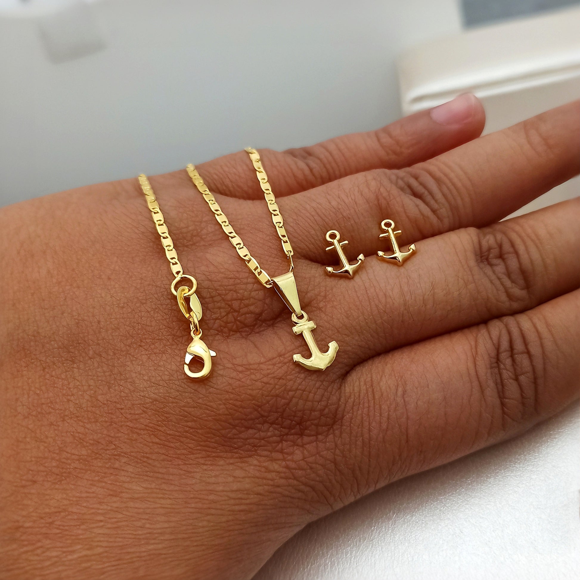 Juego Cadena, dije y topitos Ancla de Mar - JC44240
