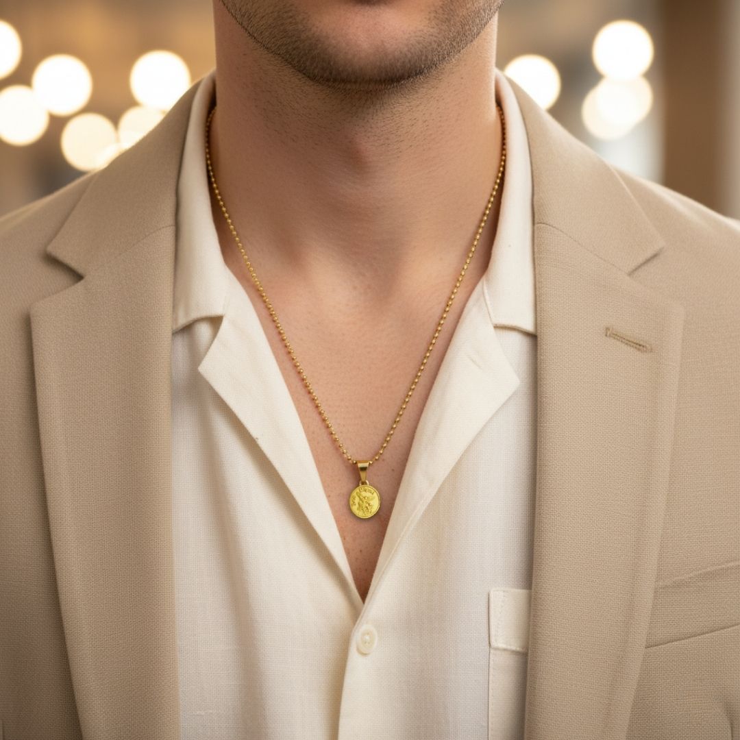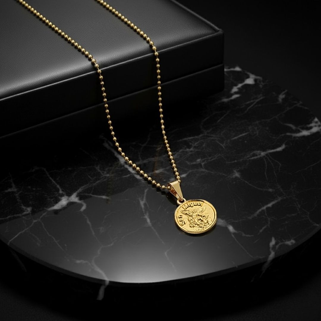 ¡Siente la protección del poderoso San Miguel Arcángel con este juego de cadena y medalla en oro laminado! Con su diseño militar y el dije de la medalla, este juego es perfecto para emananar confianza y seguridad en todo momento. ¡No esperes más y adquiere este poderoso amuleto hoy mismo!