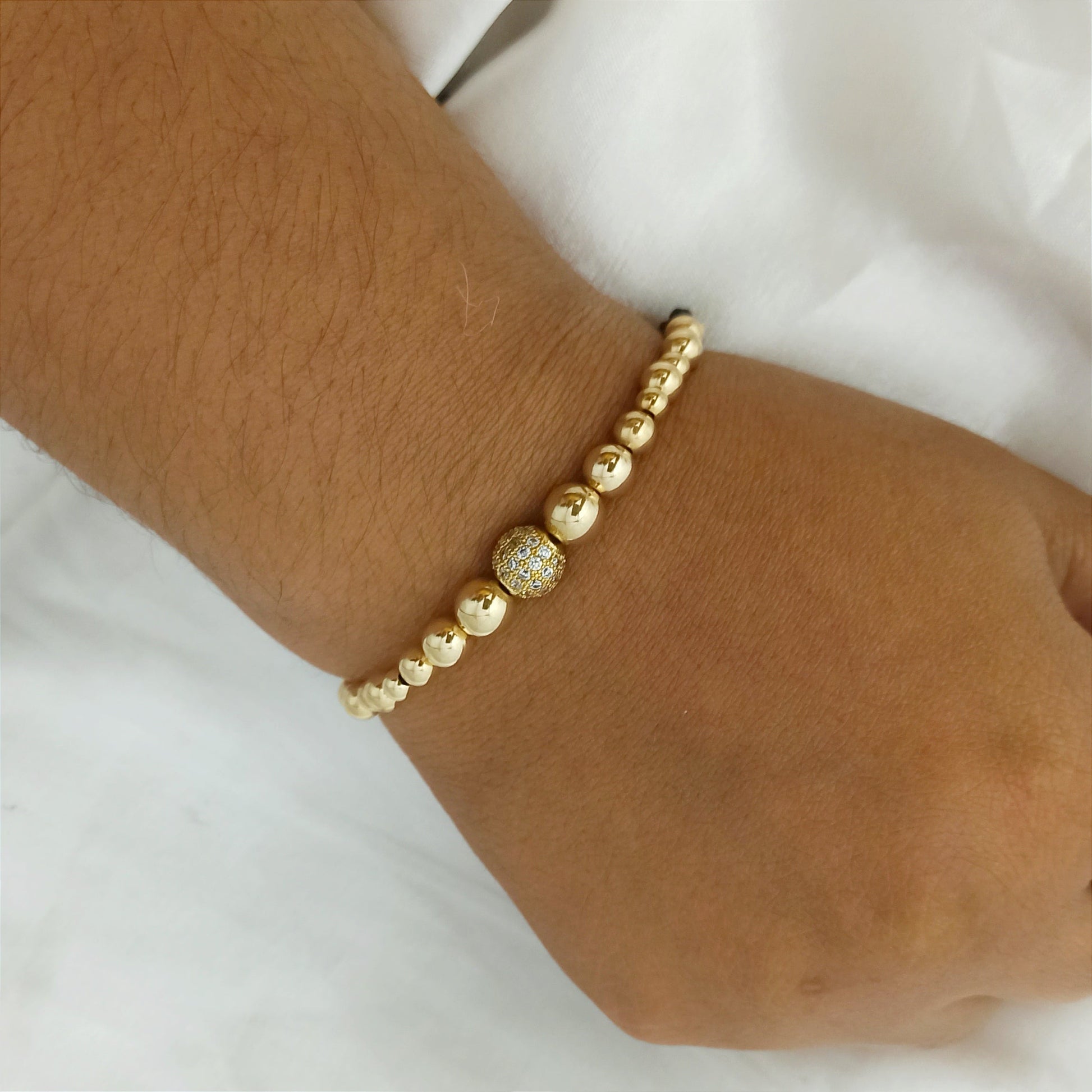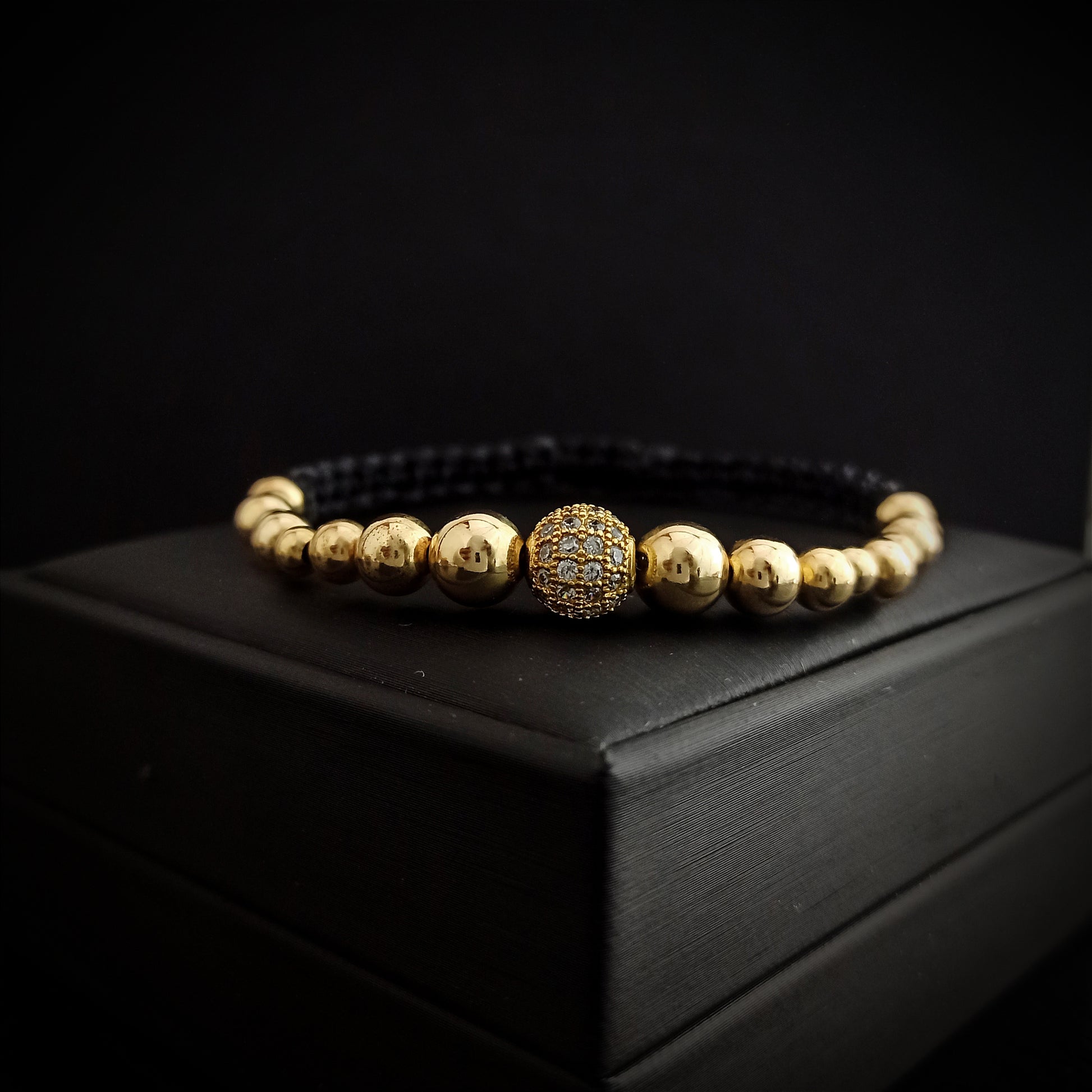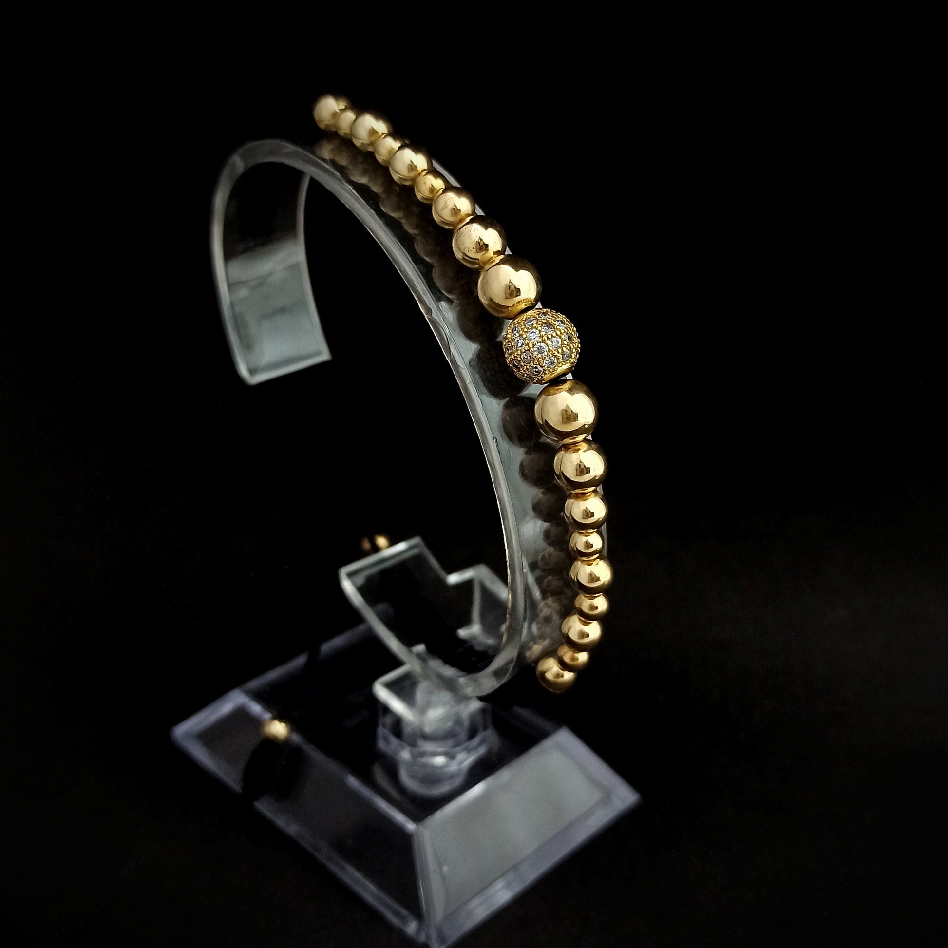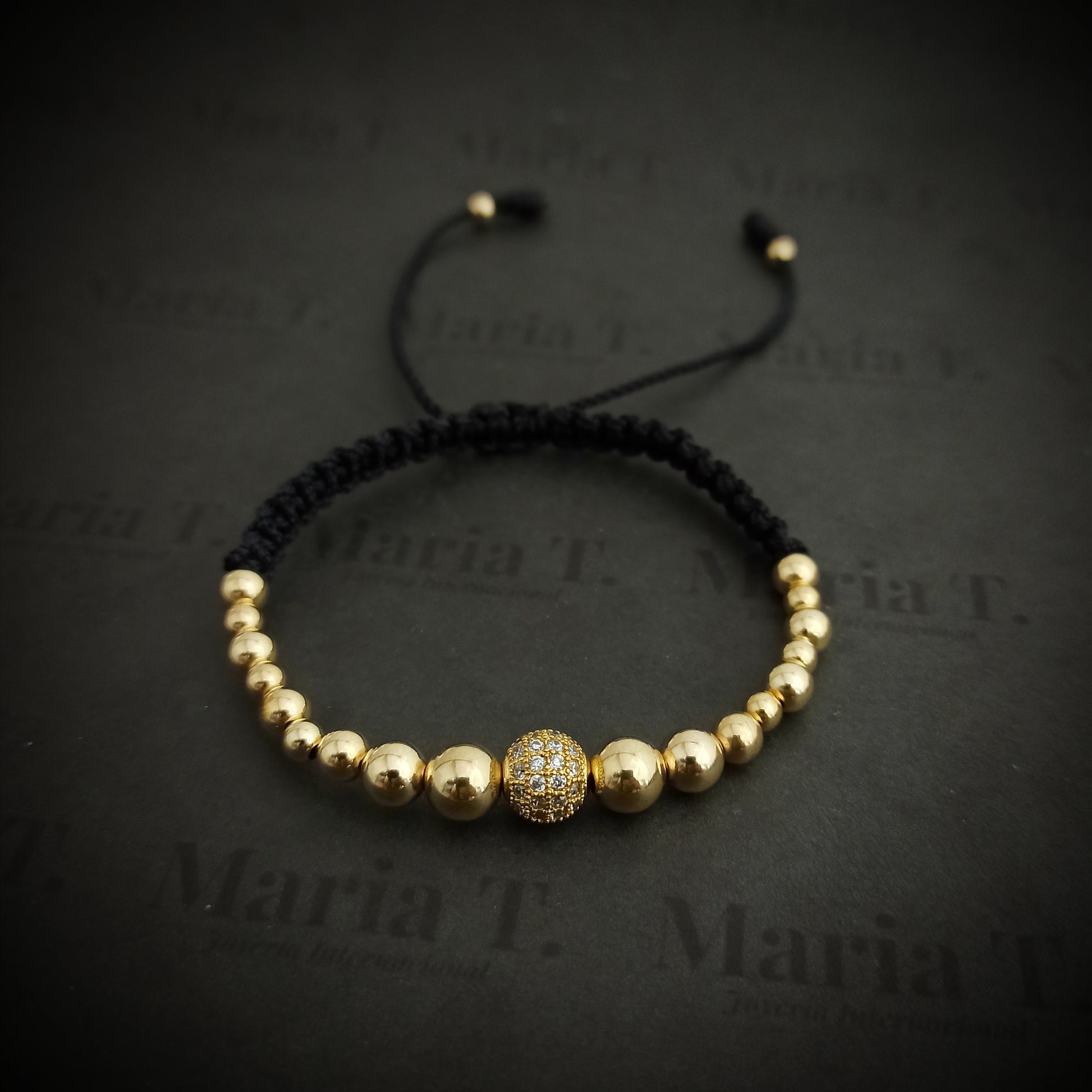 🔥 El brillo del lujo en tu muñeca. Esta manilla destaca por su diseño exclusivo, donde los balines en oro laminado 18k se fusionan con un herraje central de bola de fuego con circones que añade un toque de brillo y distinción 💎. Perfecta para quienes buscan sobresalir con una joya que hable de su buen gusto.