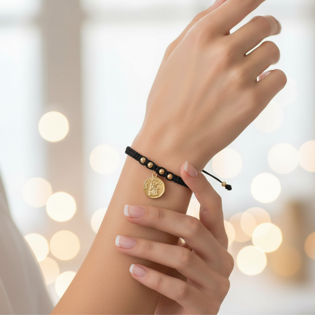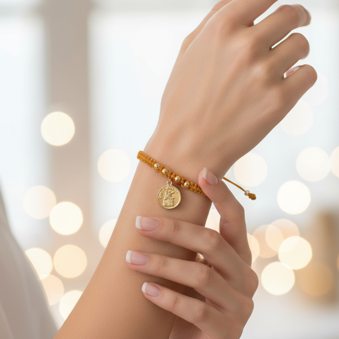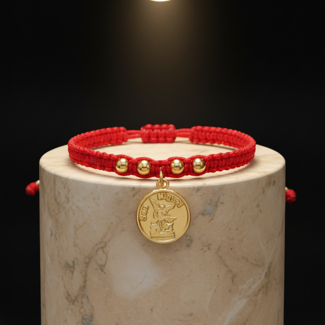Con un dije de San Miguel Arcángel y balines en oro laminado, esta manilla no solo es un accesorio elegante, sino que también te brinda protección y buena suerte. Siéntete seguro y a la moda con la Manilla Guardián San Miguel Arcángel.