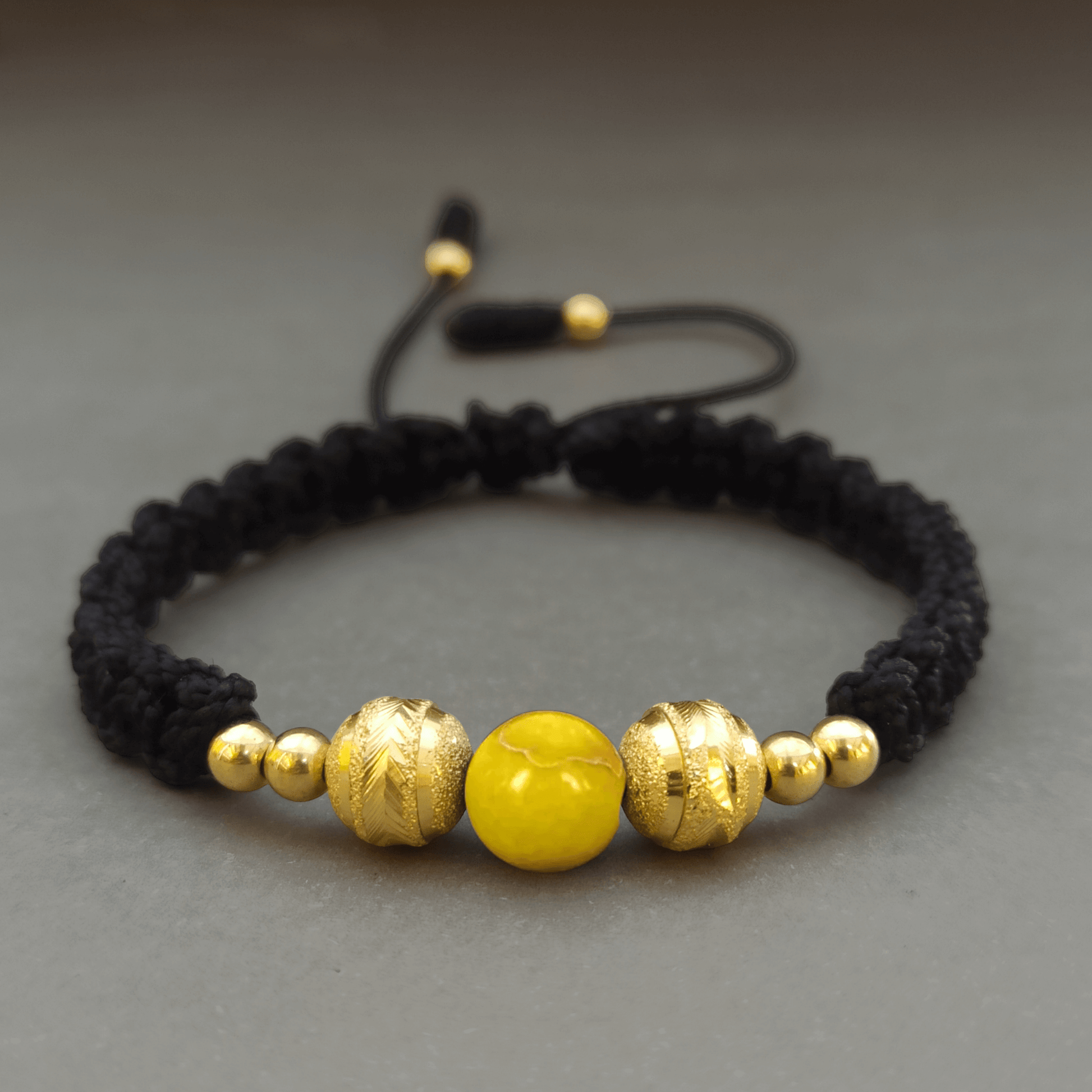 La manilla está diseñada para destacar en cualquier ocasión, ya sea una reunión especial o un día cotidiano. La combinación del oro laminado y el jaspe amarillo simboliza la fuerza y la prosperidad, mientras que su diseño elegante y versátil se adapta a cualquier estilo personal.
