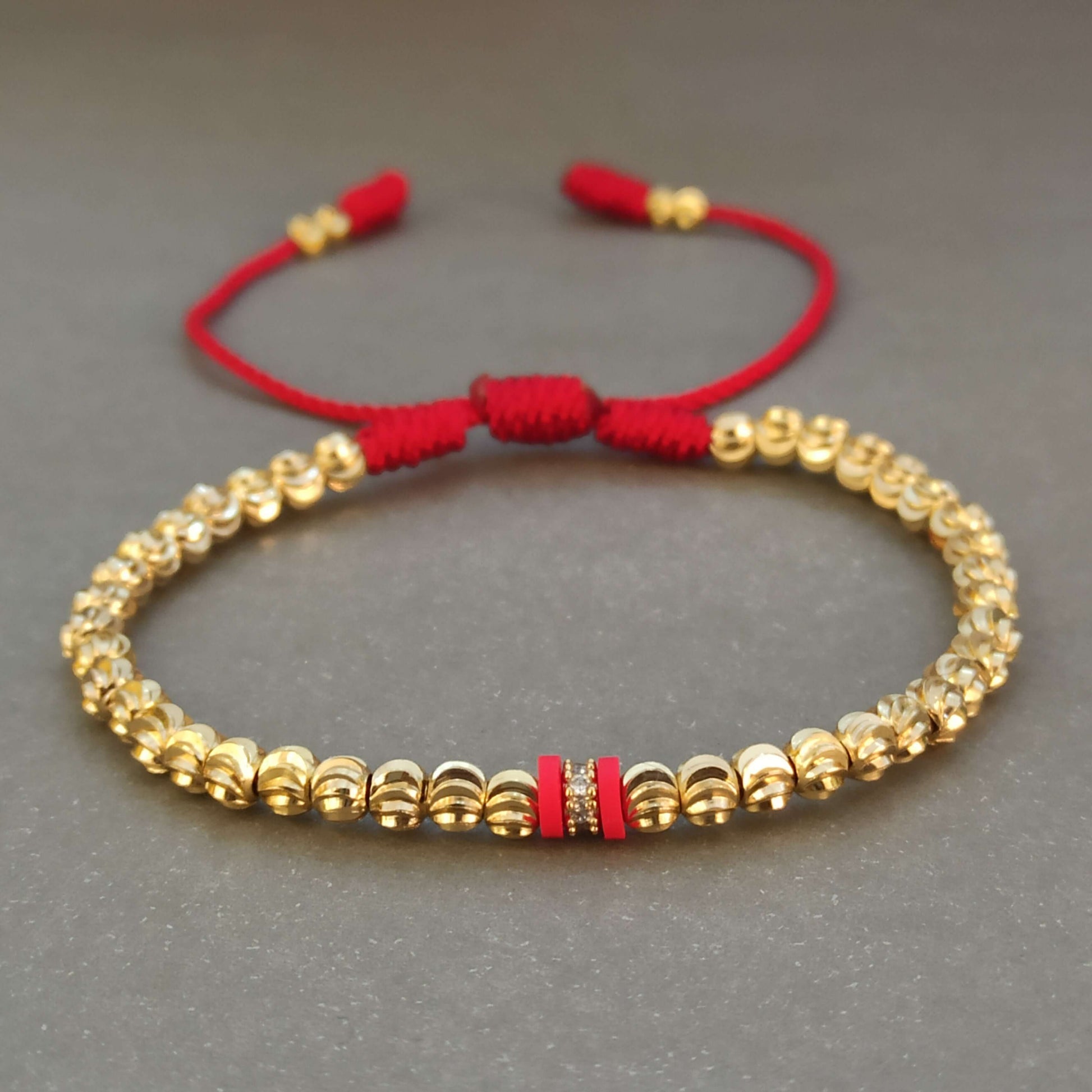Un destello de la elegancia brilla en estas manillas en oro laminado, embellecidas con delicados balines que capturan la luz de manera cautivadora. La combinación de la artesanía hecha a mano y el brillo dorado evoca una sensación de lujo y sofisticación.