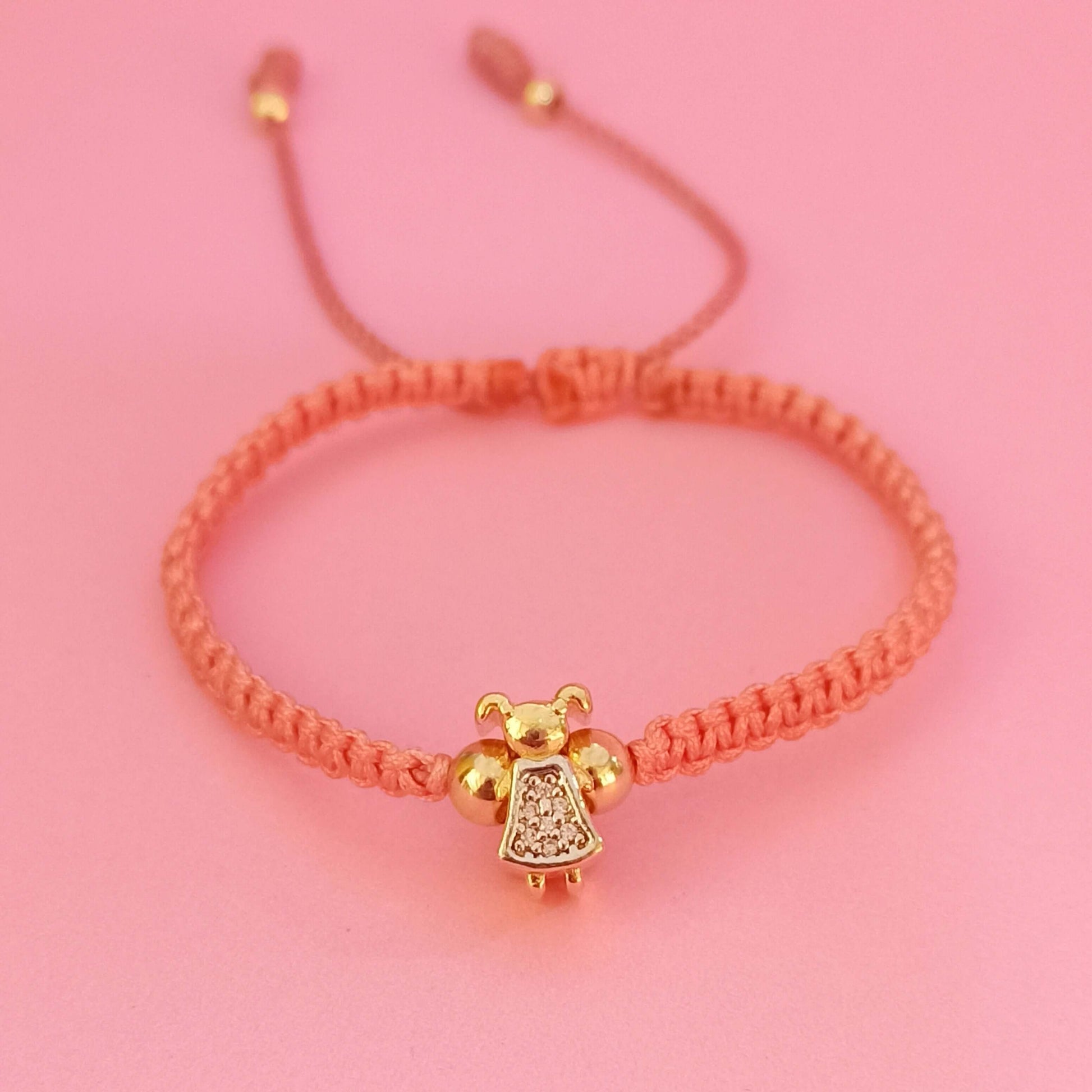 Celebra la eterna juventud y la alegría de Barbie con esta encantadora manilla en oro laminado, adornada con un tierno herraje de una niña. Inspirada en la esencia juguetona y tierna que Barbie representa, esta pieza combina la elegancia del oro con la imagen de una niña que refleja inocencia y diversión.
