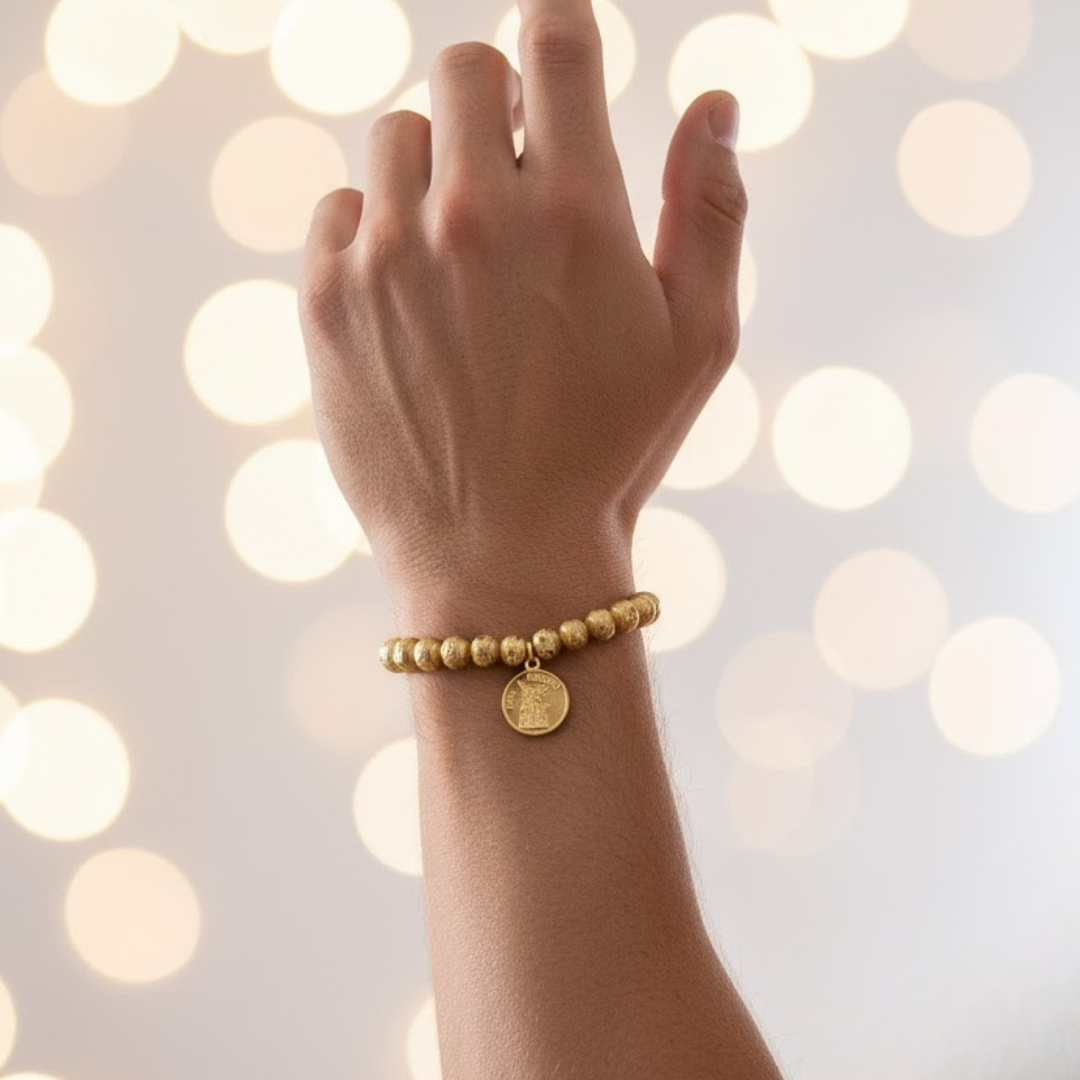 ¡Protege y lleva contigo la energía poderosa de San Miguel Arcángel con nuestra Manilla Protección Diamantada! Con balines y dije de oro laminado de alta calidad, esta manilla es un amuleto de protección y fuerza. ¡Úsala y siente su poderosa presencia a tu lado!