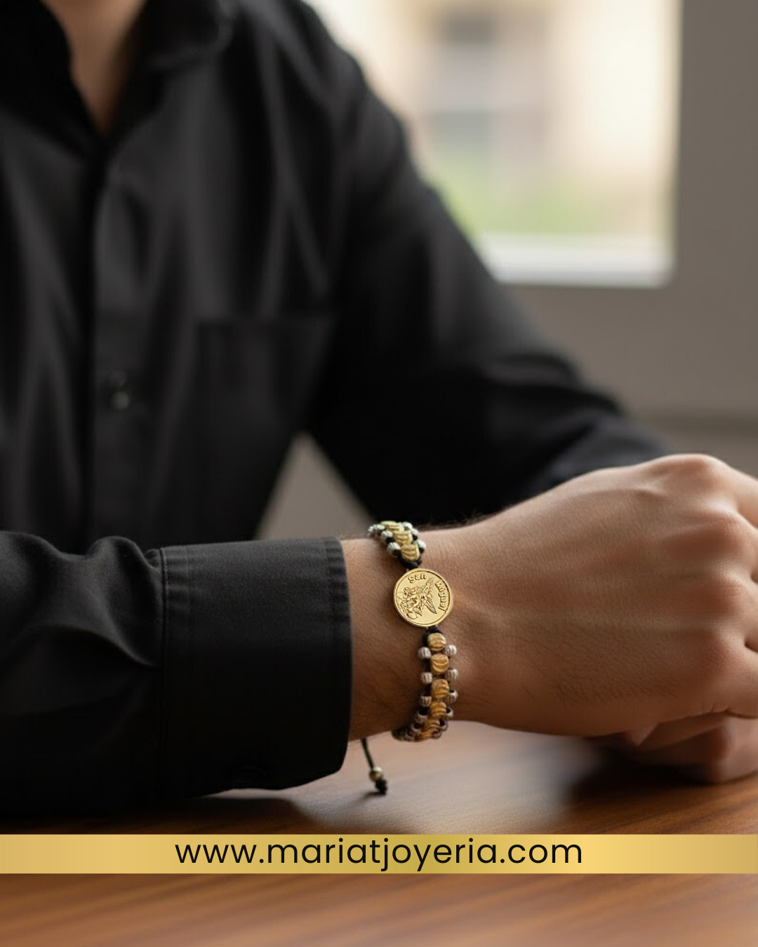 Una joya que trasciende lo estético: la Pulsera San Miguel Arcángel combina la fuerza espiritual con la elegancia del diseño artesanal.