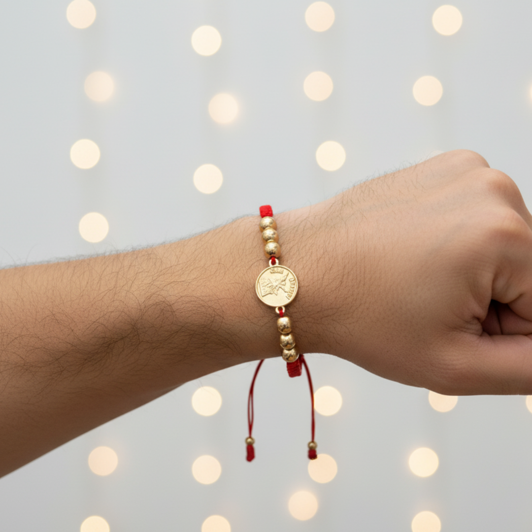 ¡Protege y cuida tu bienestar con la mano de San Miguel Arcángel! Con herraje en oro laminado 18k, esta manilla hecha de balines lisos es un amuleto poderoso para llevar siempre contigo. ¡Siente su protección y energía positiva!