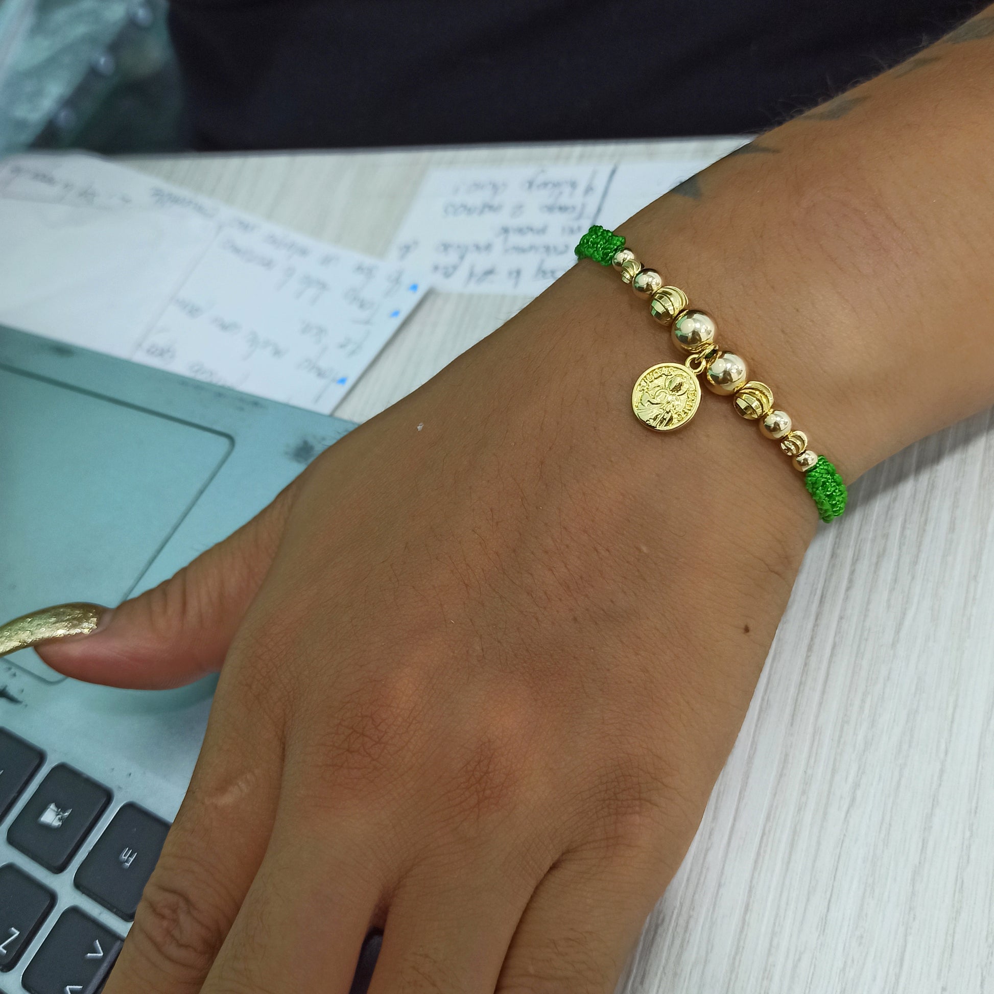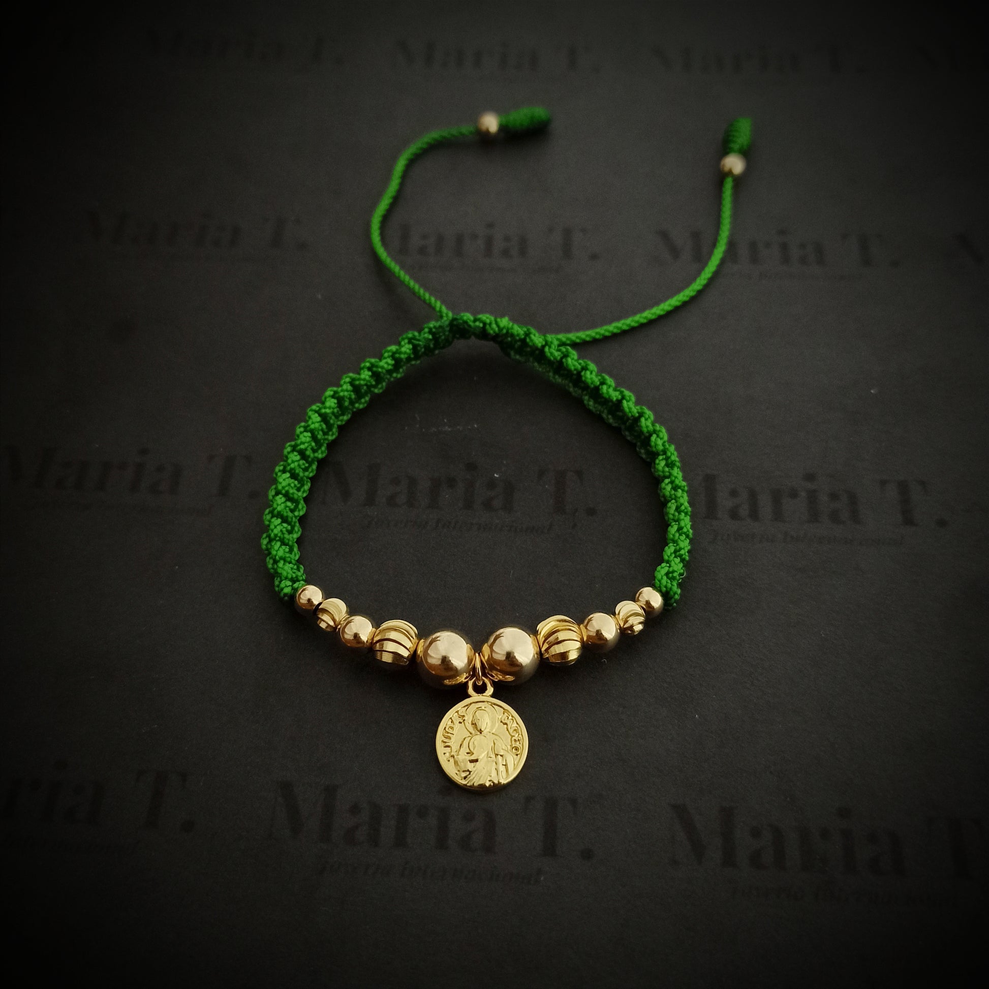 Con un diseño único hecho a mano, esta manilla incluye un dije y balines en oro laminado 18k. San Judas Tadeo, patrono de las causas imposibles, te brinda protección y ayuda en tus momentos más difíciles. ¡Hazte con la tuya hoy mismo!