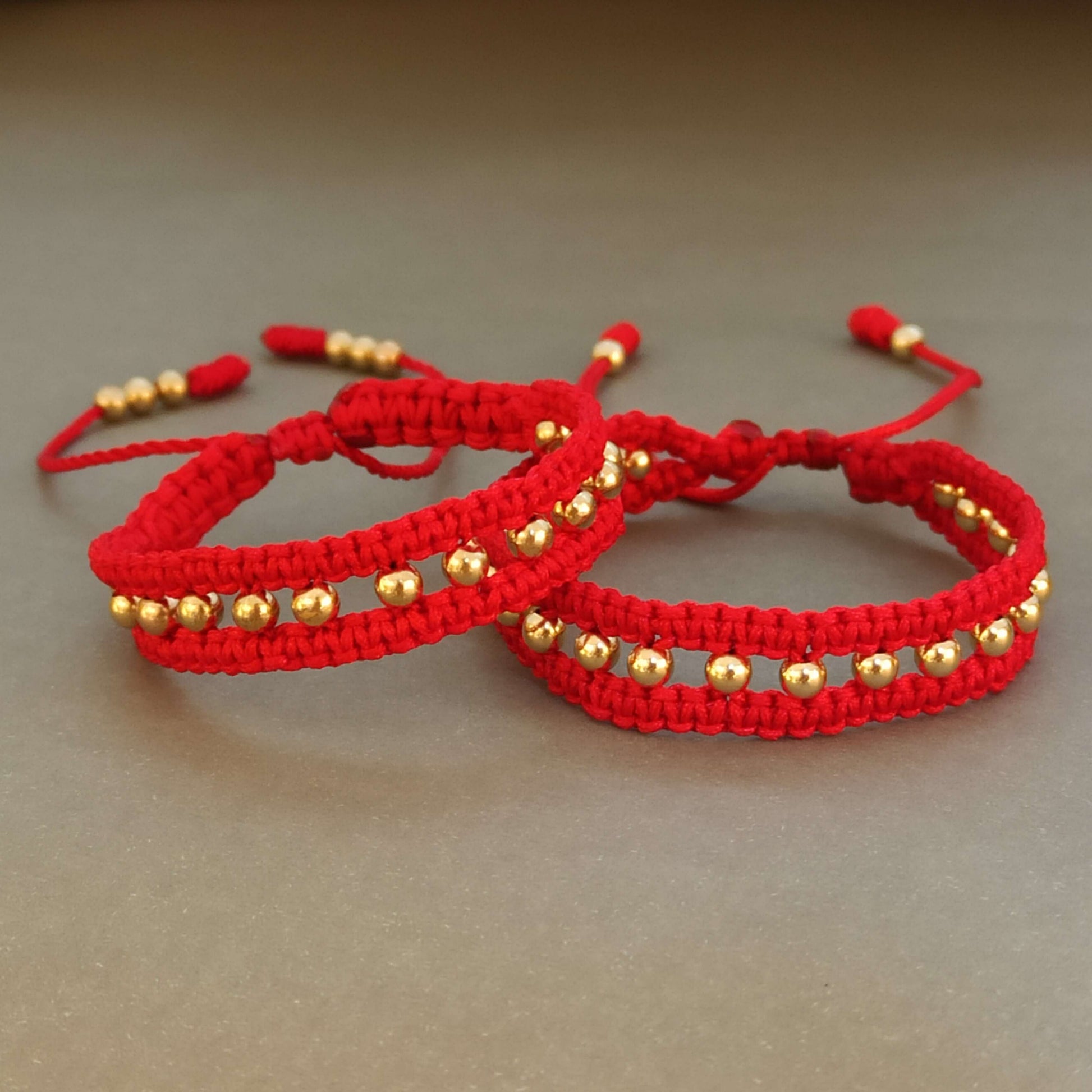 ¡Muestra tu unión con estilo! Estas manillas con un diseño tipo Brazalete, 100% hechas a mano, con balines en Oro laminado, son el regalo perfecto para los enamorados. Representan el amor y la unión entre parejas, ¡el mejor símbolo de amor ❤️!