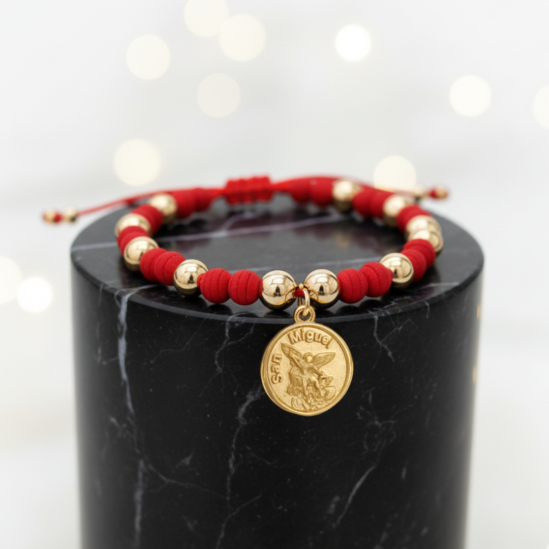 Lleva contigo la protección de San Miguel Arcángel con esta manilla hecha a mano, con un hermoso dije del arcángel y neoprenos para mayor comodidad. Siempre te sentirás protegido y seguro con esta manilla única. ¡Hazte con la tuya hoy mismo!