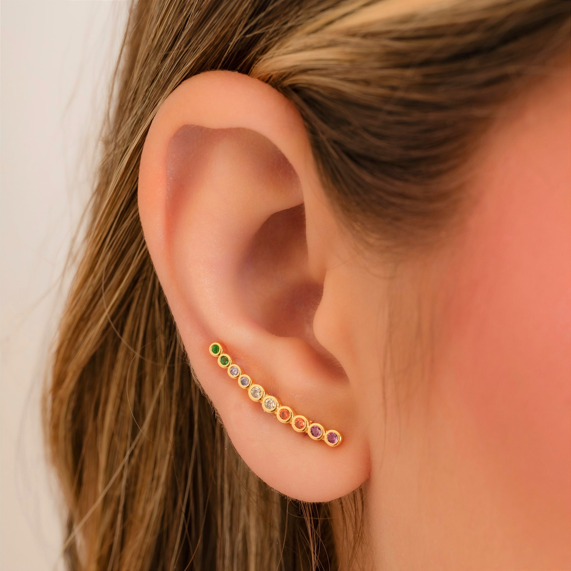Magnífico topito alargado con circones de colores, elaborado en oro laminado. Una joya super COOL para realzar tus atuendos. Luce elegante y a la moda con este hermoso accesorio que aportará un toque de brillo y estilo a tus looks. ¡Hazlo tuyo hoy mismo!