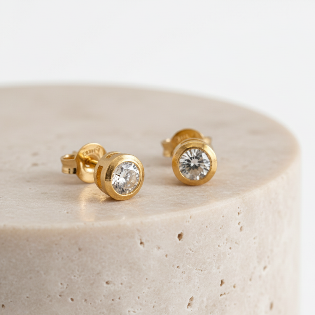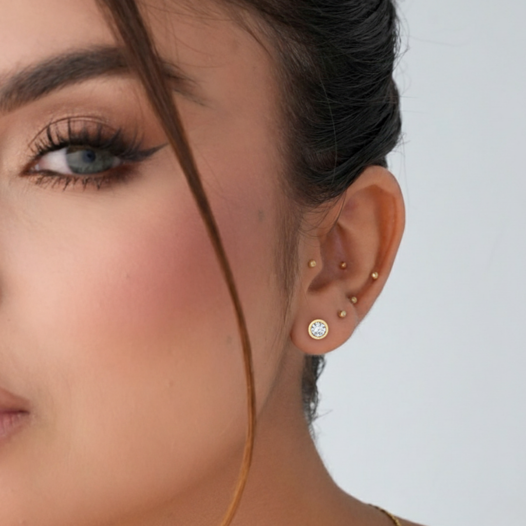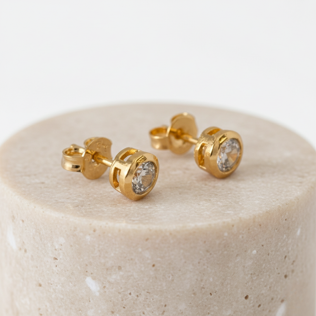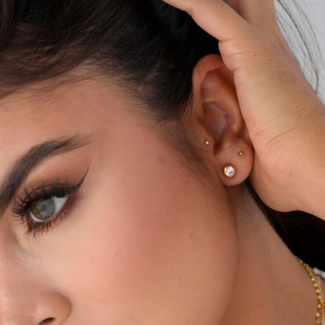 Su diseño limpio con circonia central atrapa la luz con cada movimiento, dándote ese brillo sutil que eleva cualquier look sin esfuerzo. Desde jeans hasta tu vestido favorito: estos topitos están hechos para acompañarte siempre.