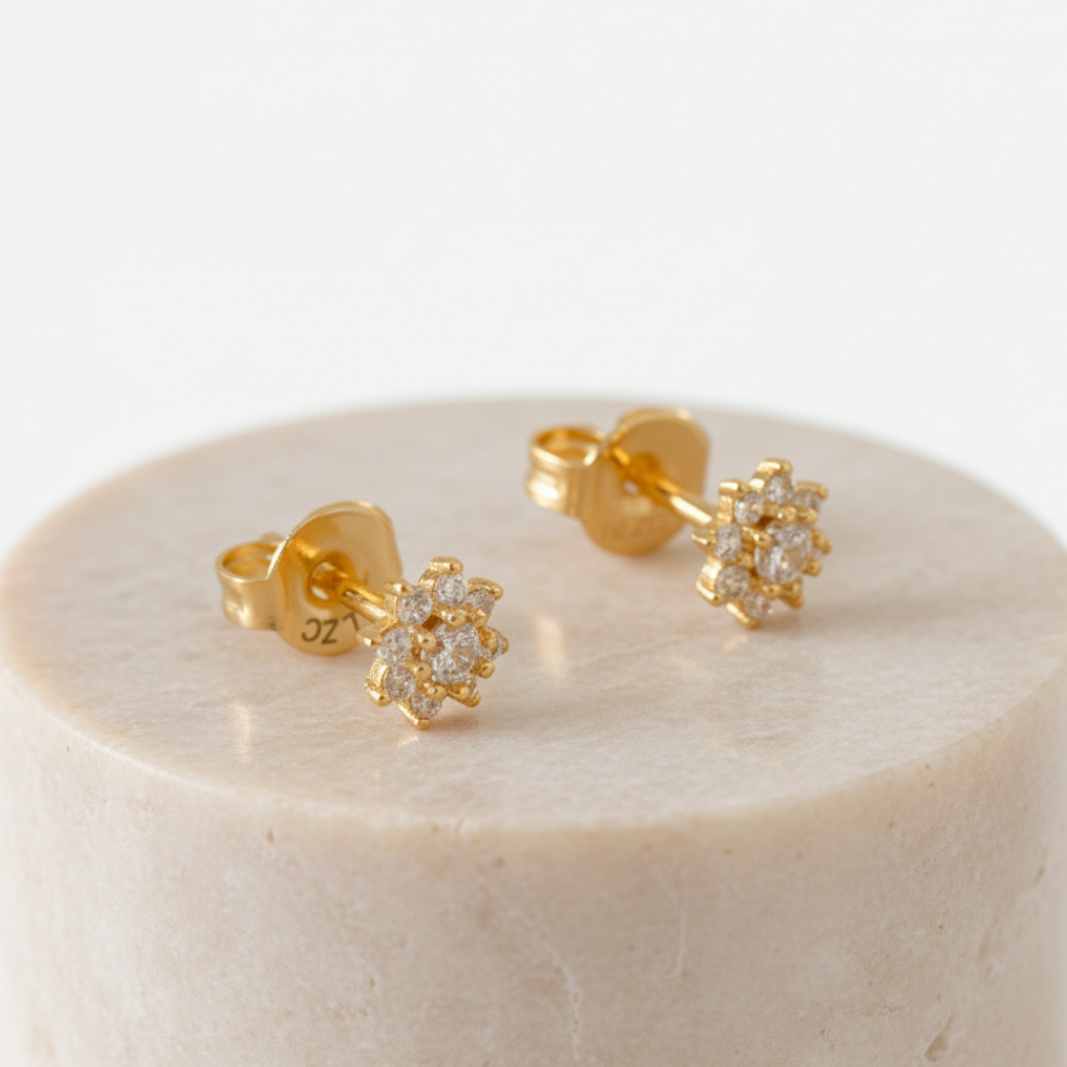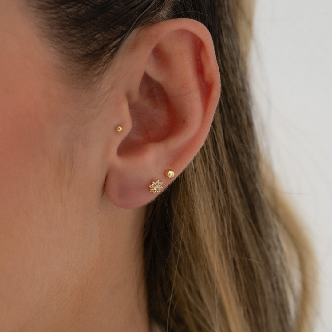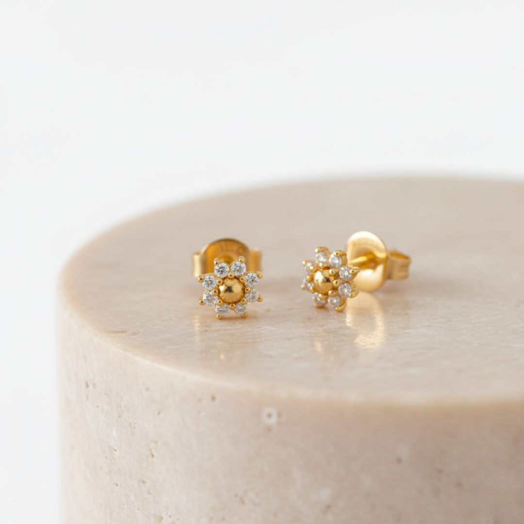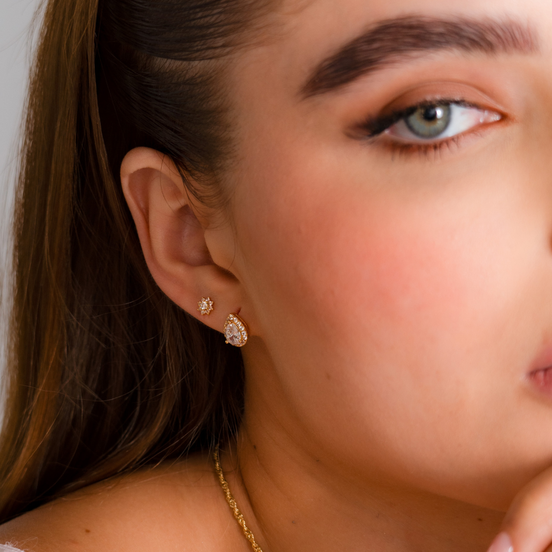 Como luciérnagas doradas en tus orejas, estos topitos atrapan la luz de manera delicada, discreta y sofisticada. Un clásico reinventado para mujeres que saben que la belleza está en los detalles.